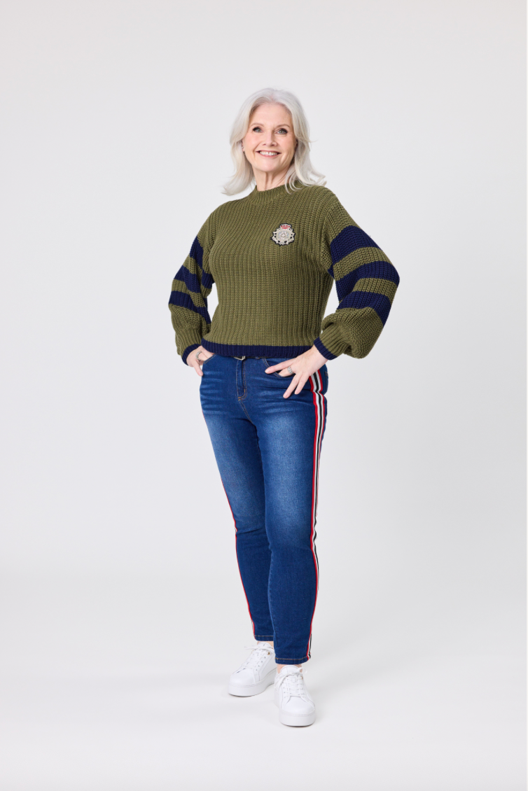 Aliza Knit Khaki Navy