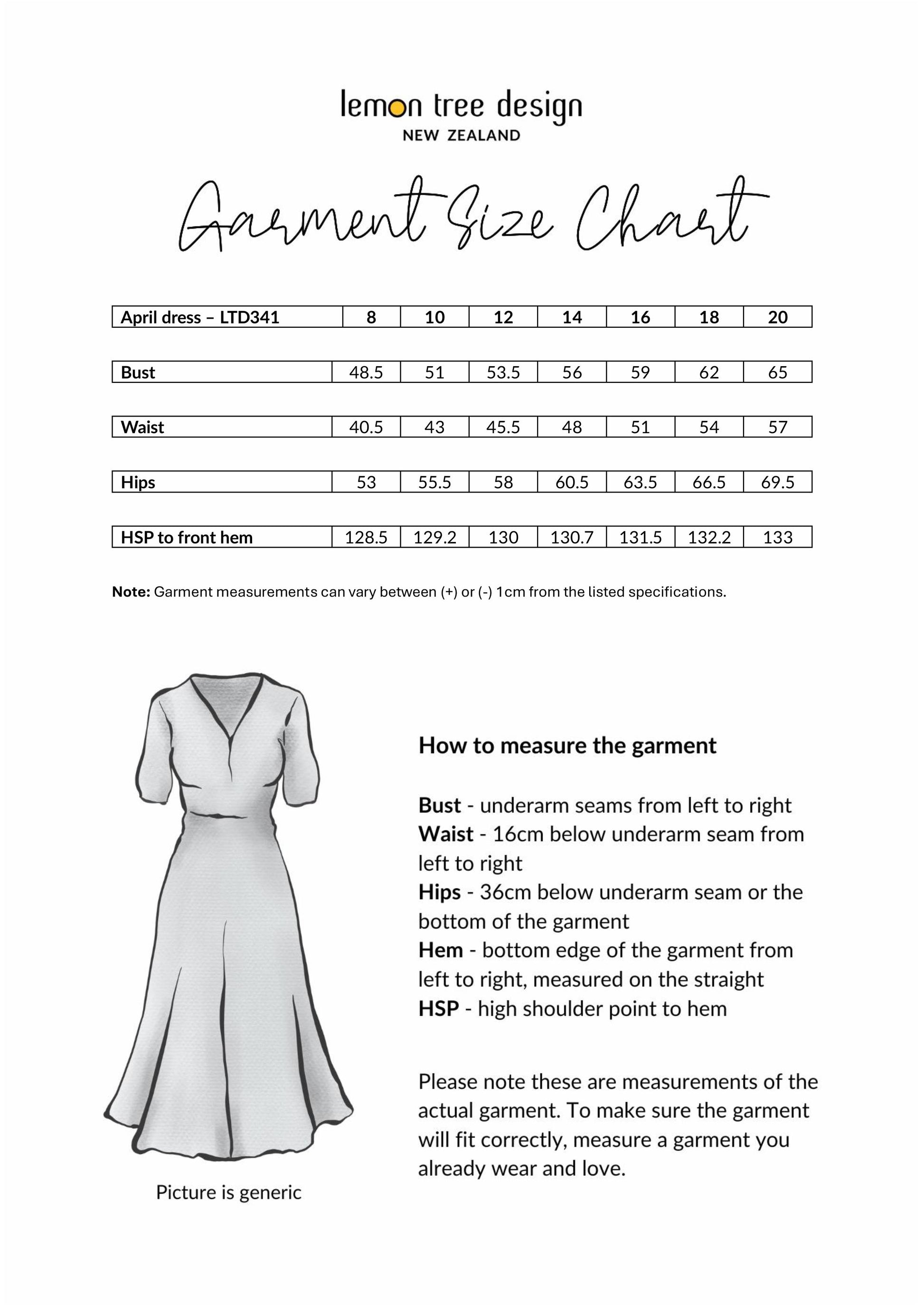 • The dress is made from a blend of Rayon and Viscose, and is available in  sizes 8-20.