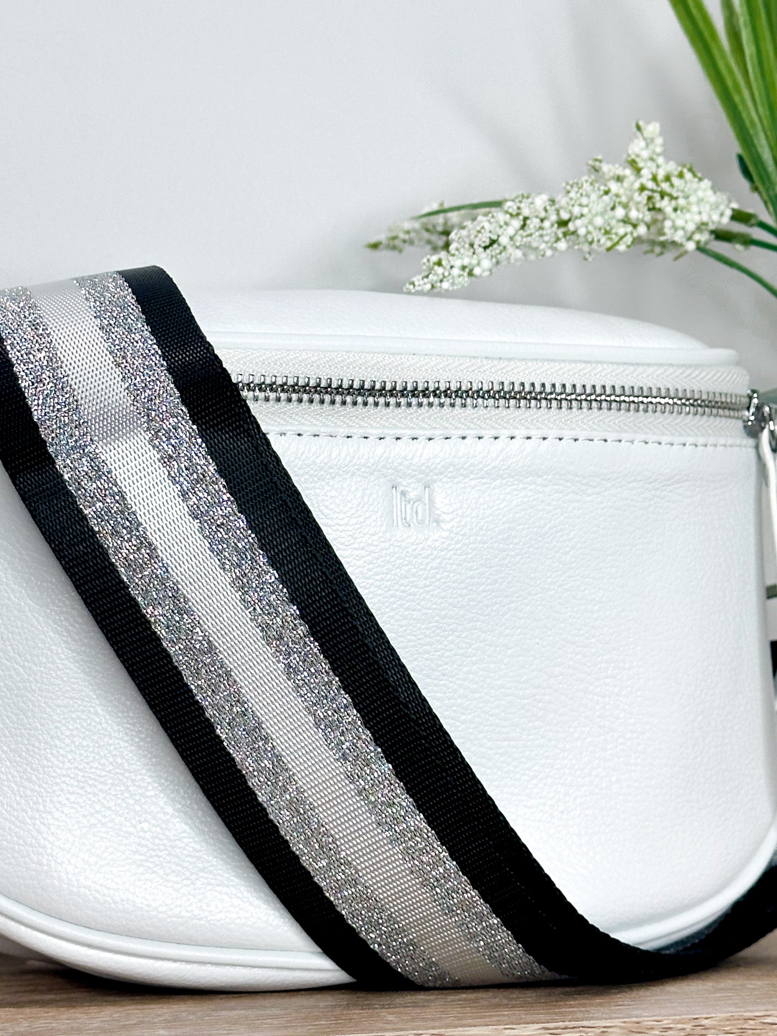 Elevate your Dani handbag with our premium adjustable guitar strap. Made from durable woven fabric, this versatile strap features elegant silver-tone hardware and a unique design, perfect for adding a touch of sporty chic and functionality to any bag.