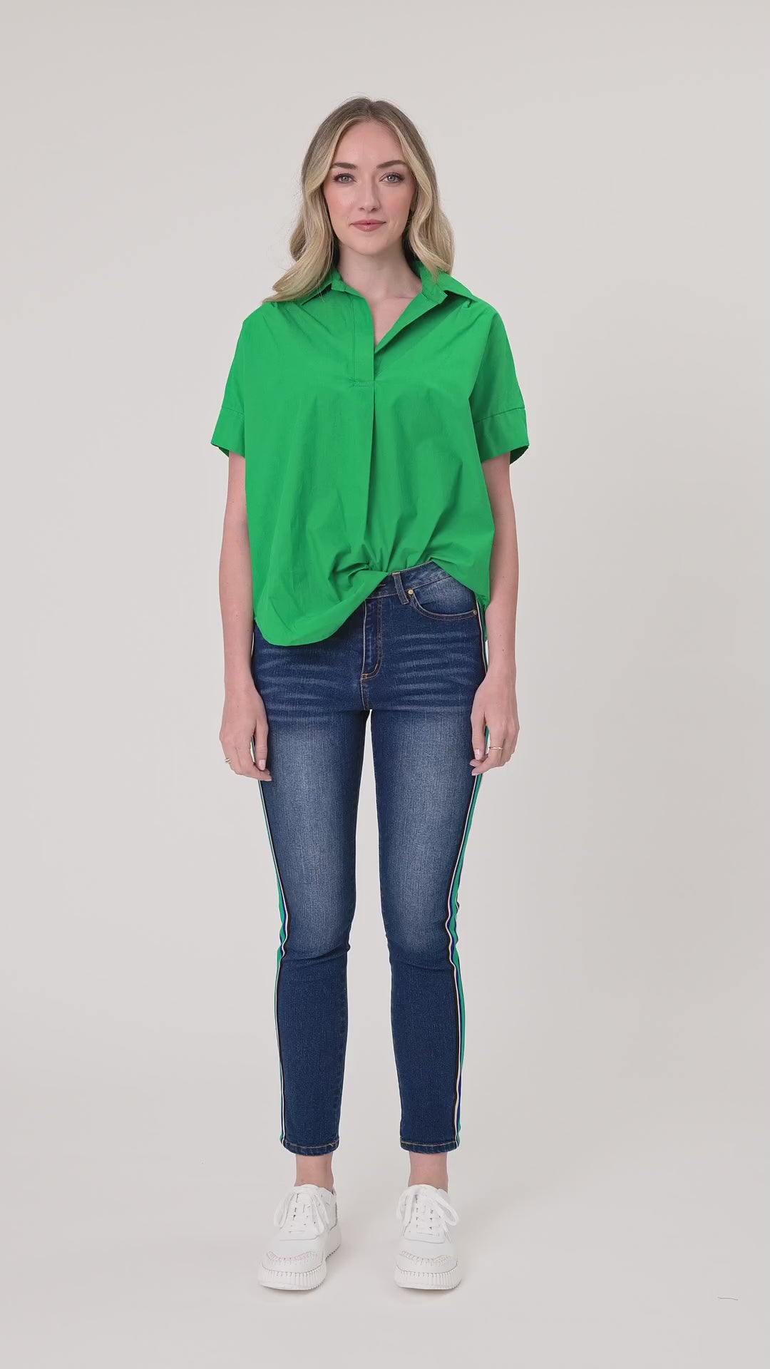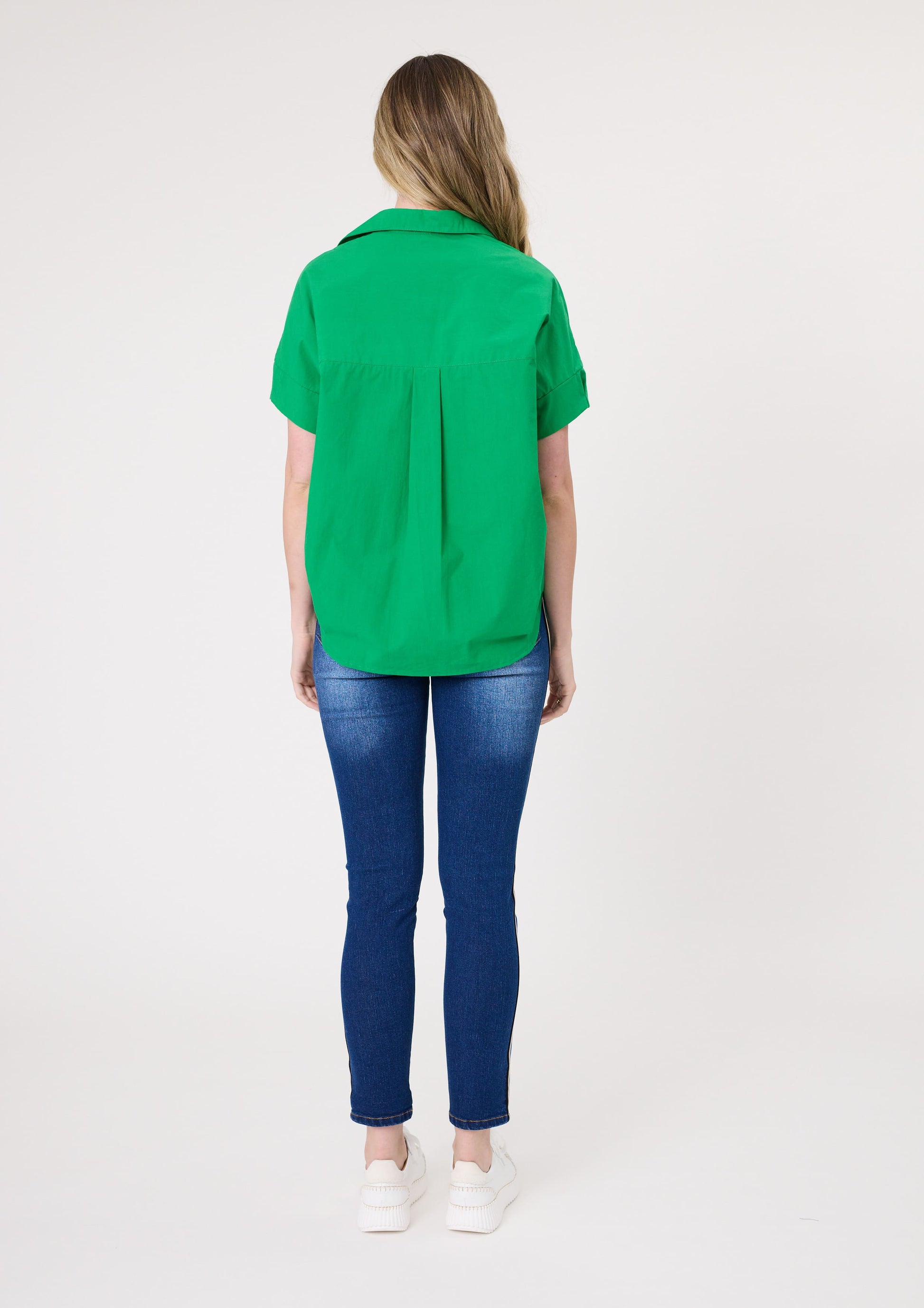 Dora Top in fresh green with a classic collar, made from 100% cotton for breathable comfort.