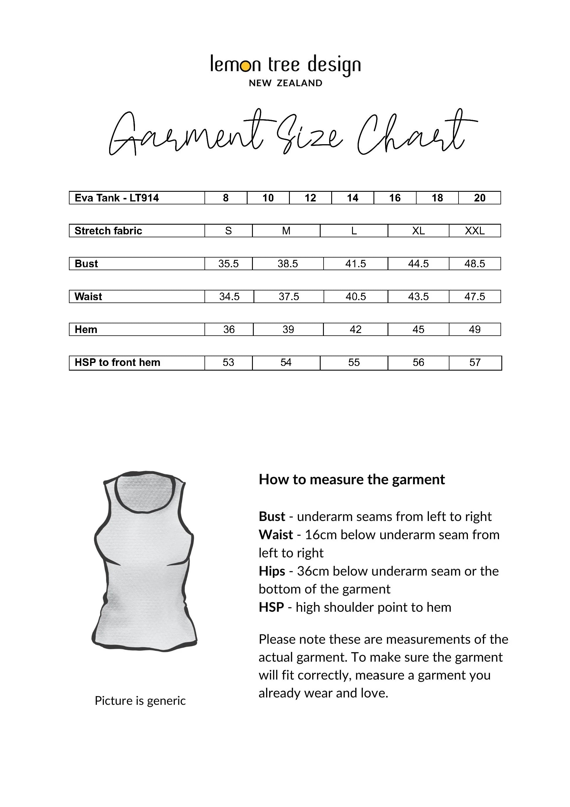 Note: Garment measurements can vary between (+) or (-) 1 cm from the listed specifications.