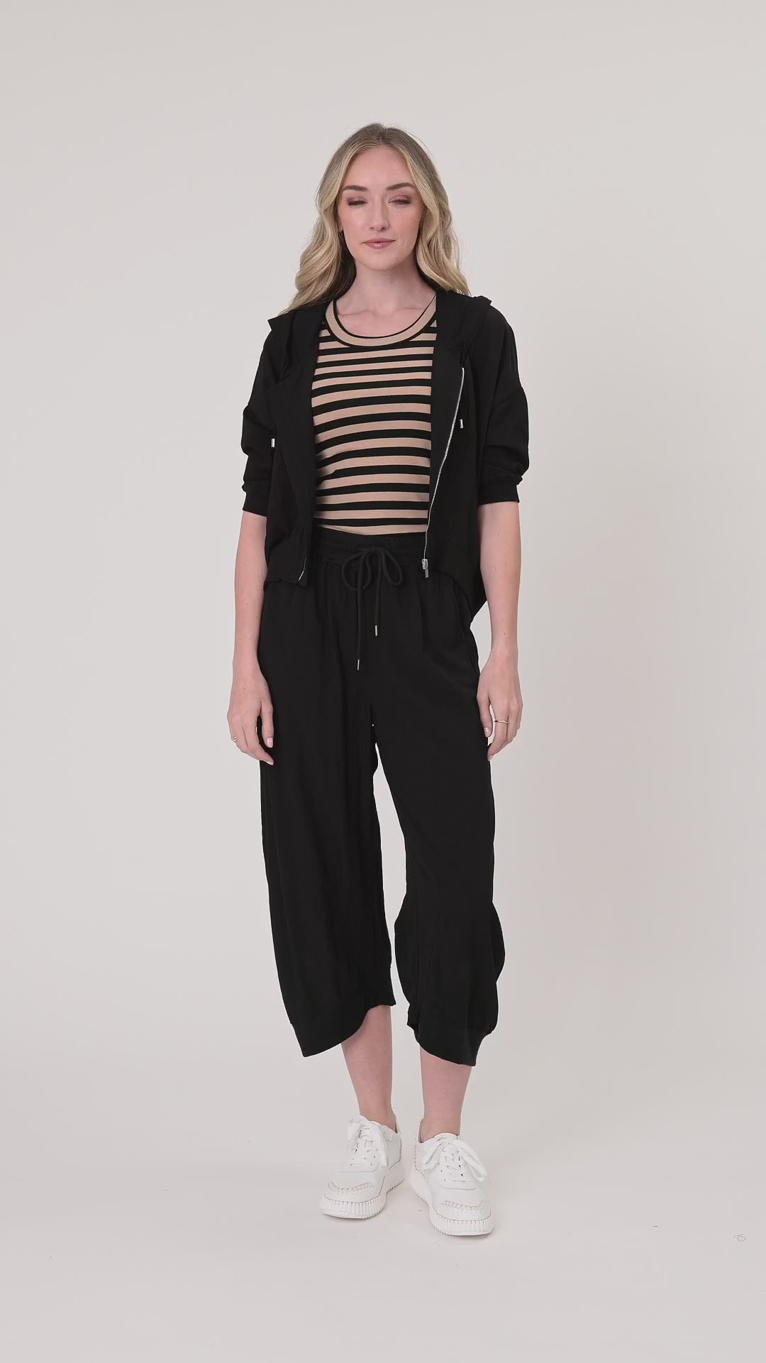 Pre-order now — dispatched from September. Pre-order T&Cs apply. Mocha and black stripe with a sleek, ribbed loo...