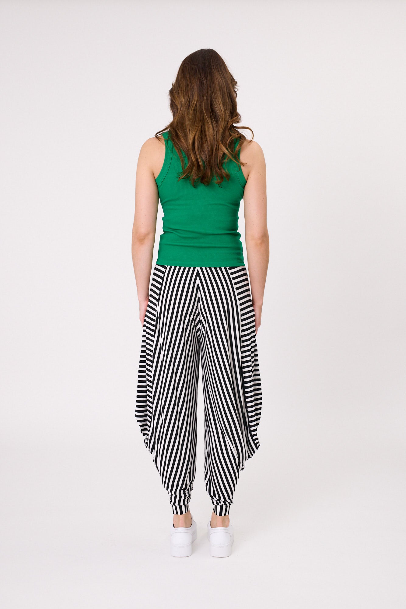 Eva Tank in green with a sleek, ribbed texture, slim fit, and sleeveless design, made from a stretchy cotton blend for comfort.