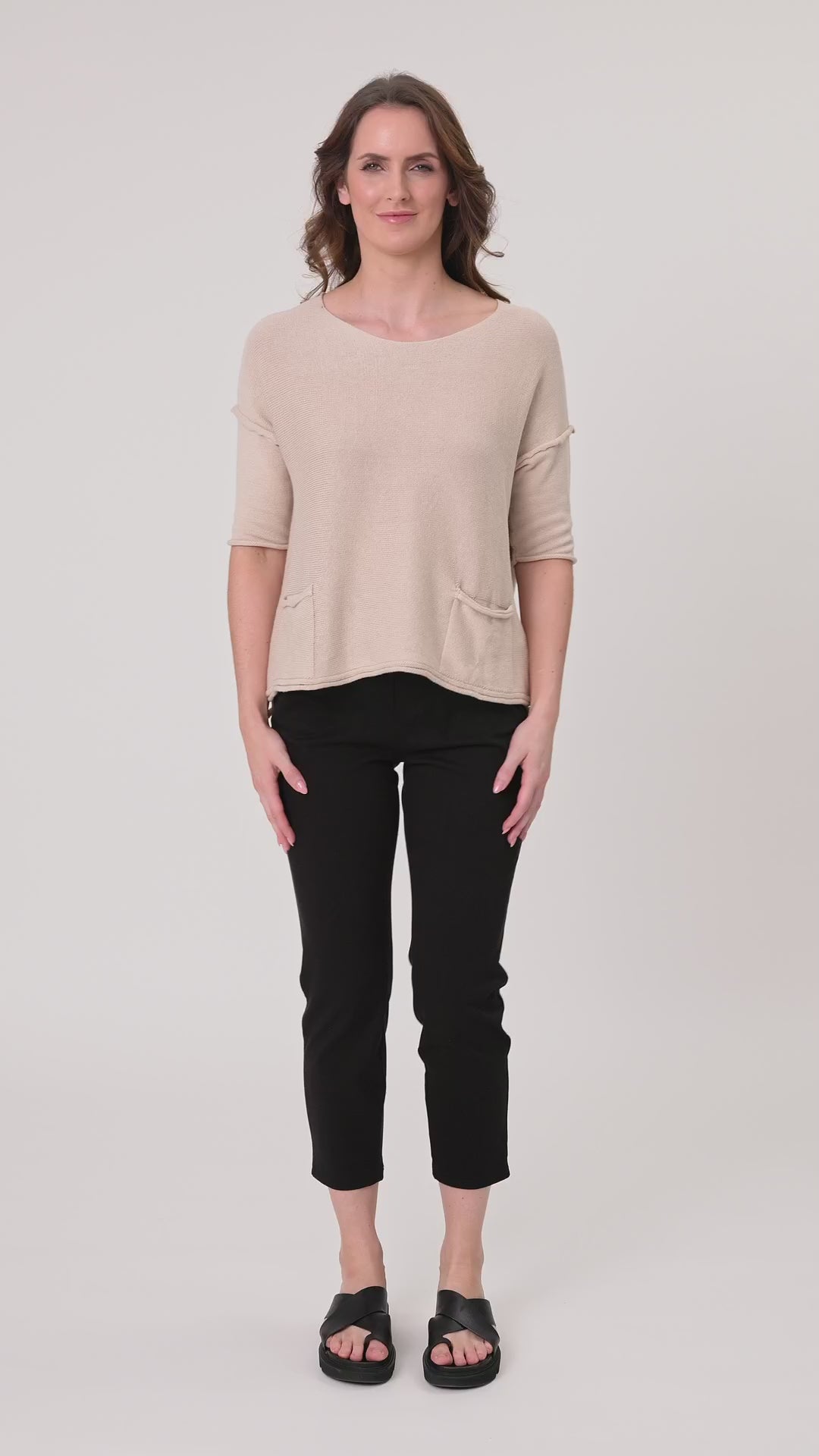 Back view of Gemma Pant in black showing elasticated waistband and two functional back pockets.