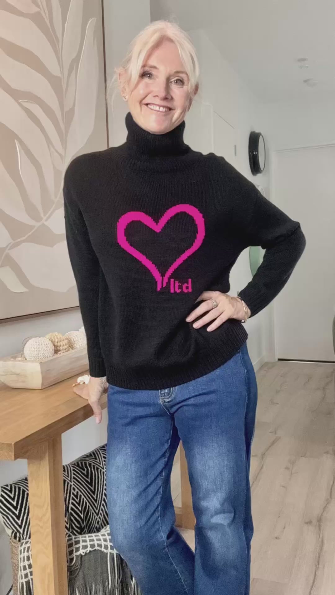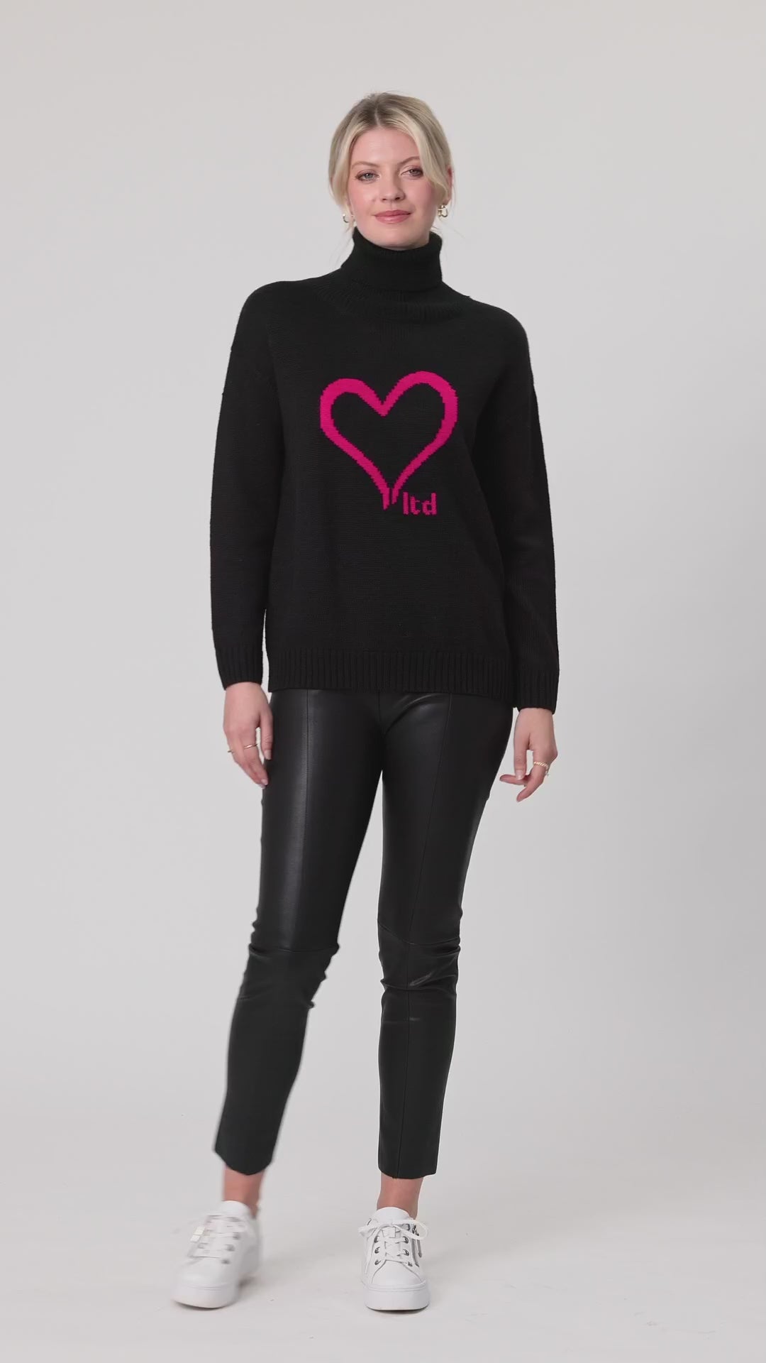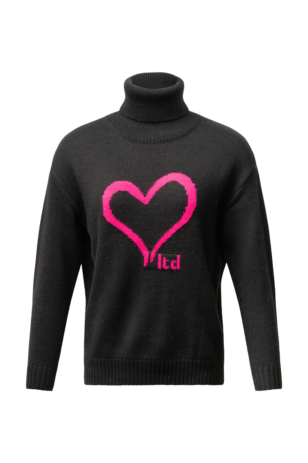 Long sleeve design for warmth and comfort. Turtle neck for added coziness and style. Bold cerise heart print for a p...