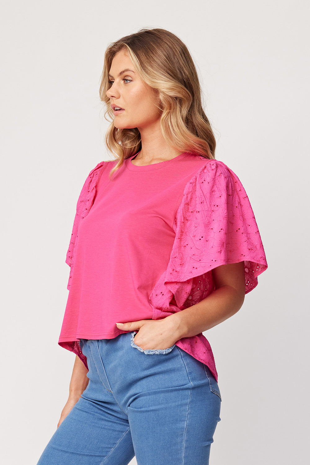Elevate your look and your classic t-shirts with the Lia Lace Top. Featuring gorgeous floaty lace sleeves and a full lace back with flattering gathers.