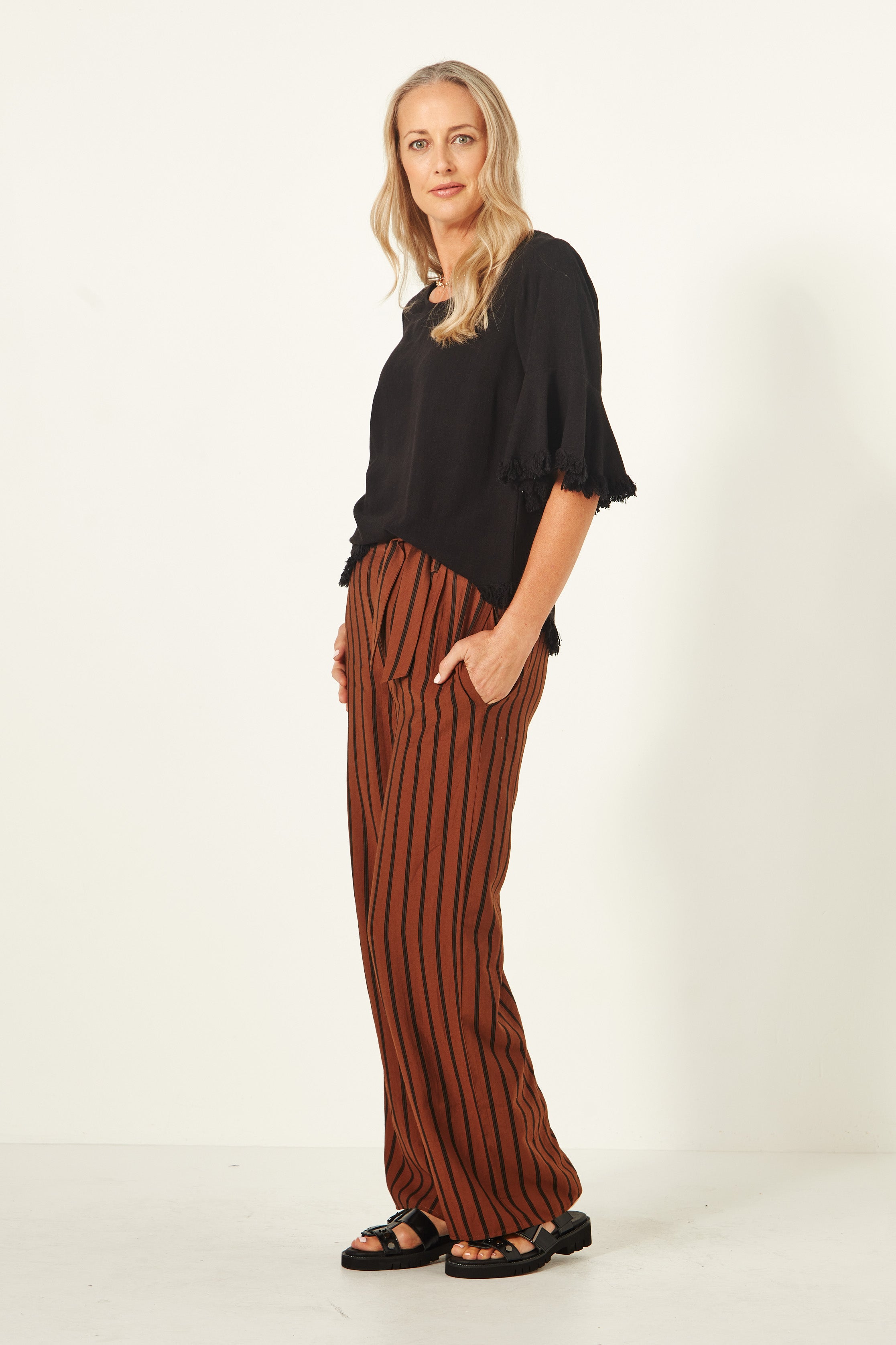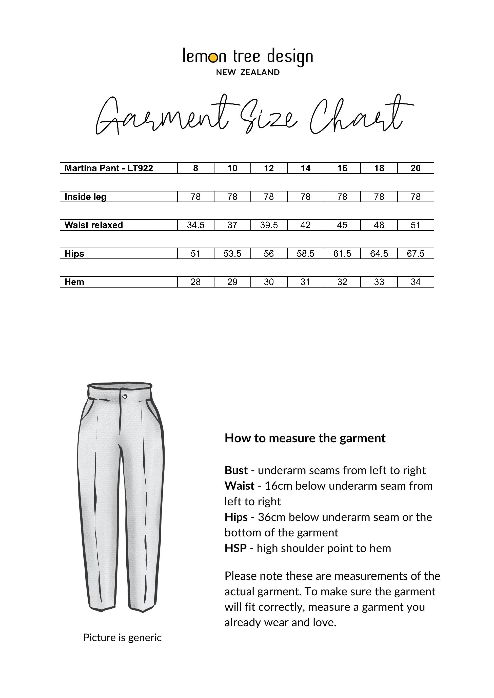 Our Martina pants feature a loose fit for comfort and style, as well as an elasticated waistband with a tie belt for a customisable fit.